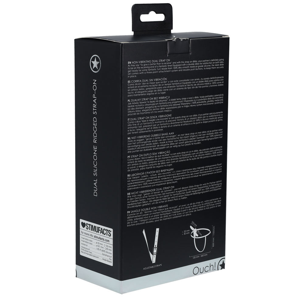 OUCH! Dual Silicone Ridged Strap-On - Black - Black Double Ended Strap-On