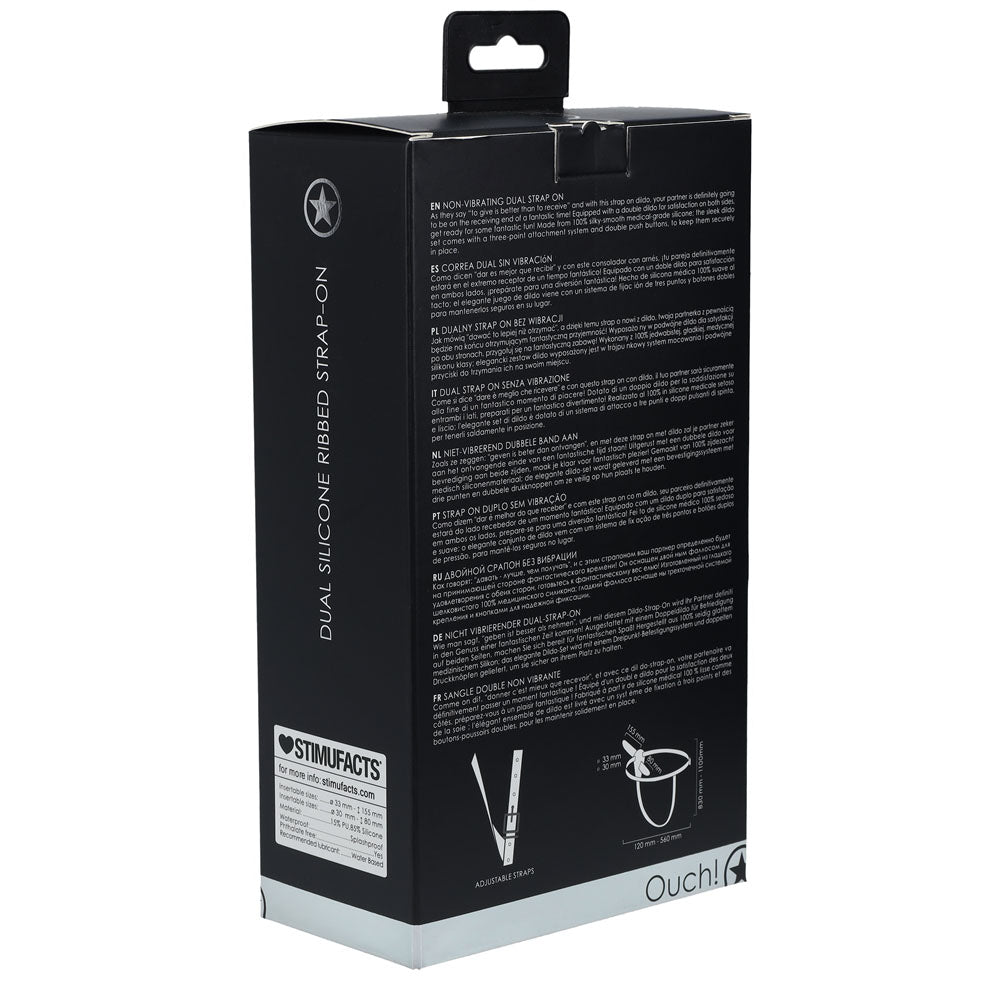 OUCH! Dual Silicone Ribbed Strap-On - Black - Black Double Ended Strap-On