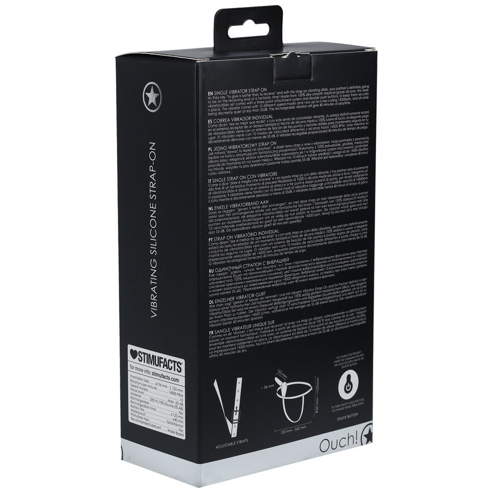 OUCH! Vibrating Silicone Strap-On - Black - Black USB Rechargeable Strap-On